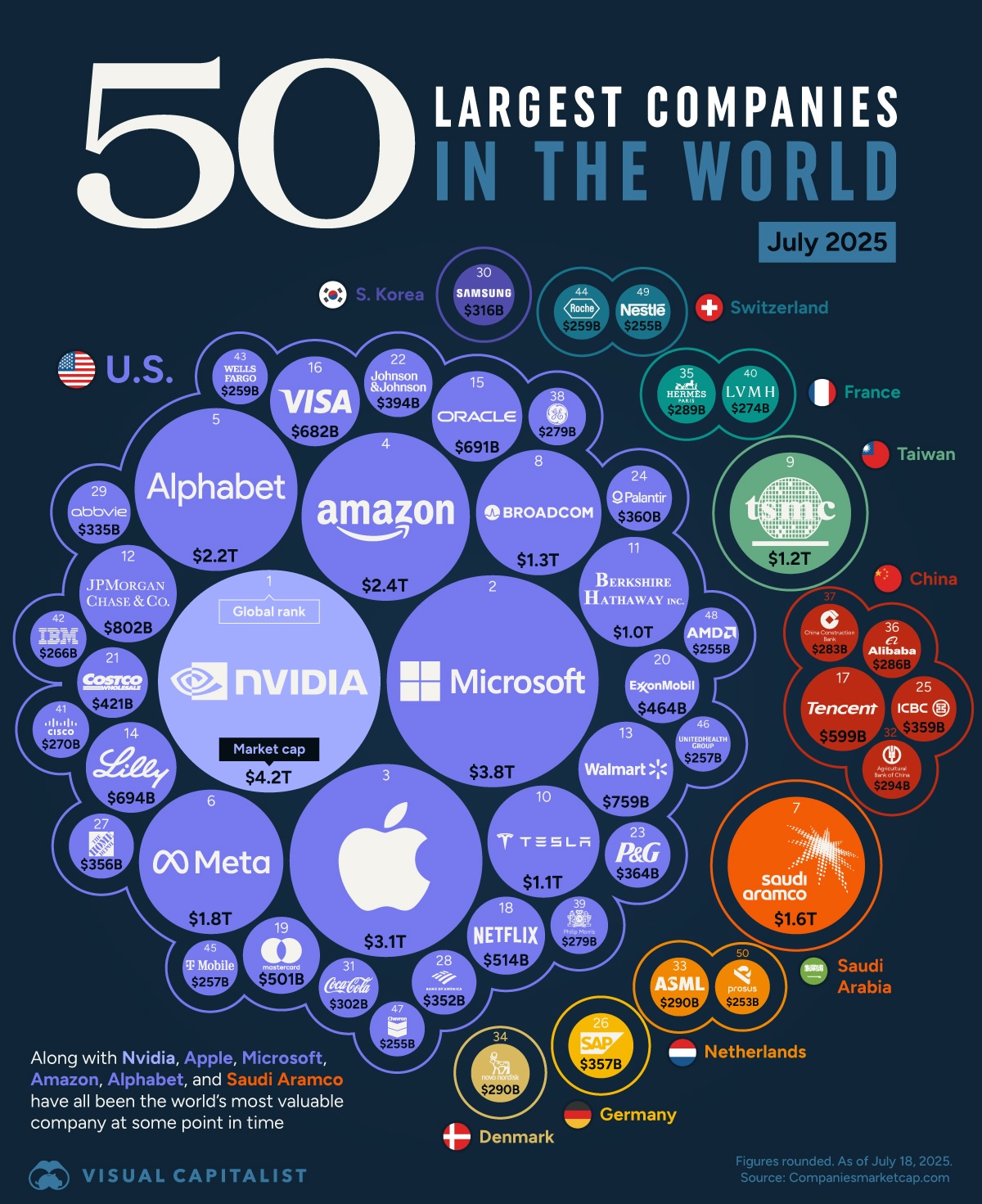 Visual Capitalist just released this updated chart of the 50 largest companies in the world (July 2025) — and it’s another reminder that software really did eat the world.