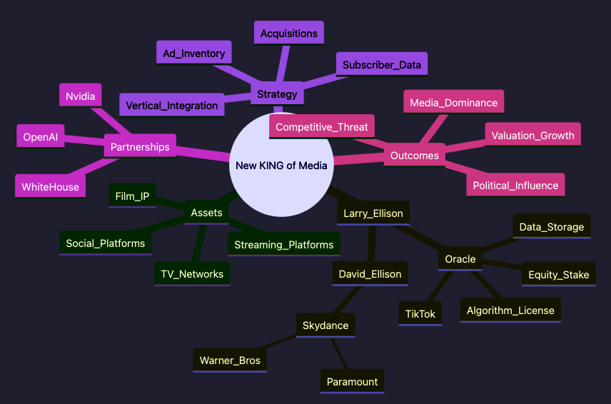 - Skydance (led by David Ellison) bought Paramount for $8B and is pursuing Warner Bros., rapidly scaling from a small studio to a major media owner.